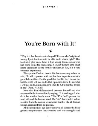 Find out what makes you tick. Who are you and why do you do the things you do? We are all born with a particular type of temperament with distinct strengths and weaknesses. In Spirit-controlled Temperament, Dr. Tim LaHaye shows us how God can transform your natural weaknesses and make you a dynamic and effective Christian. Whether you are a Sanguine, Choleric, Melancholy, or Phlegmatic, you can learn how to live above anger, fear, depression, and selfishness.